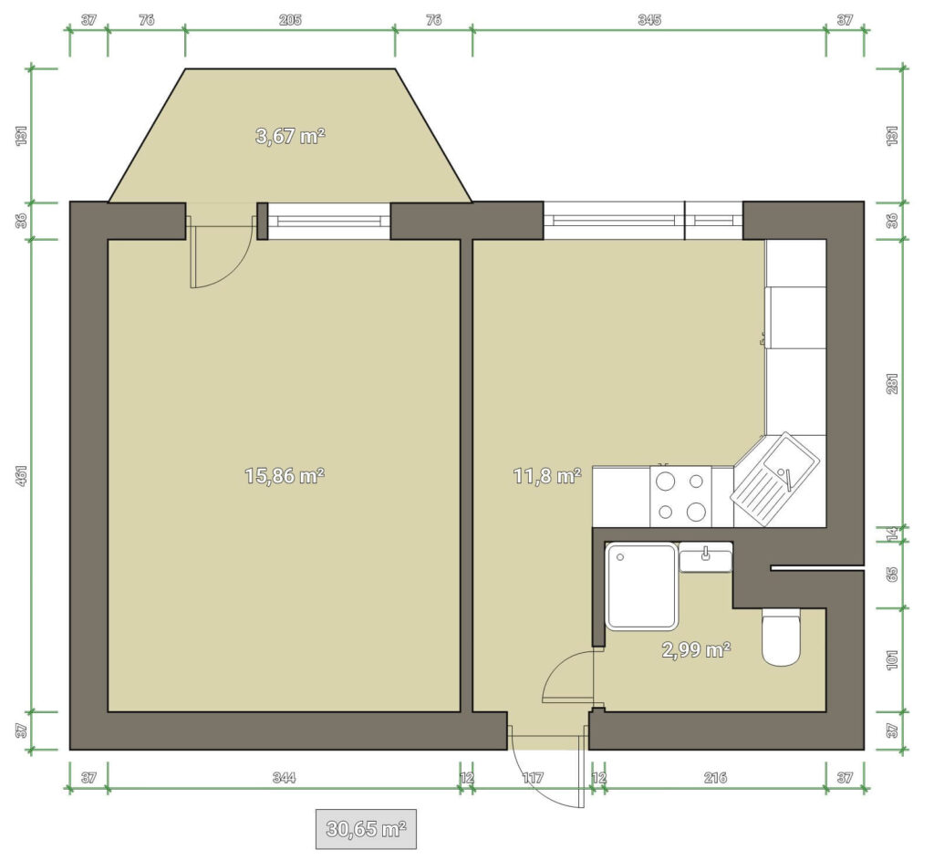 Byt 1+1 vás potěší zejména svou prostorností.