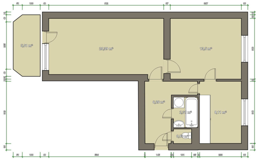 • Byt je ihned obyvatelný, ale případnou rekonstrukci usnadní cihlová konstrukce a již vyzděné jádro.