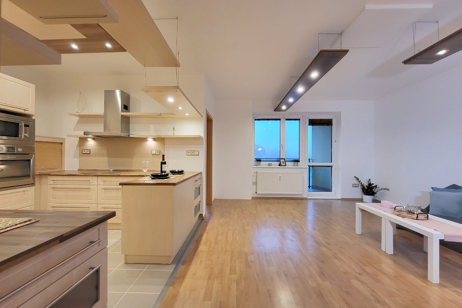 Obývací pokoj s kuchyňským koutem 22,60m² se vstupem na prostornou lodžii 6,77m², ze které je krásný výhled do zeleně.Z obývací místnosti se dále dostanete do ložnice 20,24m² s francouzskými okny, které poskytují stejně uklidňující výhled jako lodžie. Lodžie i okna do ložnice jsou orientována na jihozápad, tudíž v odpoledních hodinách je byt prosvětlený. K bytu náleží kryté parkovací stání 10m² , a prostorný sklep 5m². Parkovací stání a sklep jsou v osobním vlastnictví, zatímco byt je ve vlastnictví družstevním. Byt nyní nelze převést od osobního vlastnictví. Budova disponuje energetickou náročností C, využívá vlastní kotelnu – od toho se odvíjí nízké měsíční náklady na bydlení.