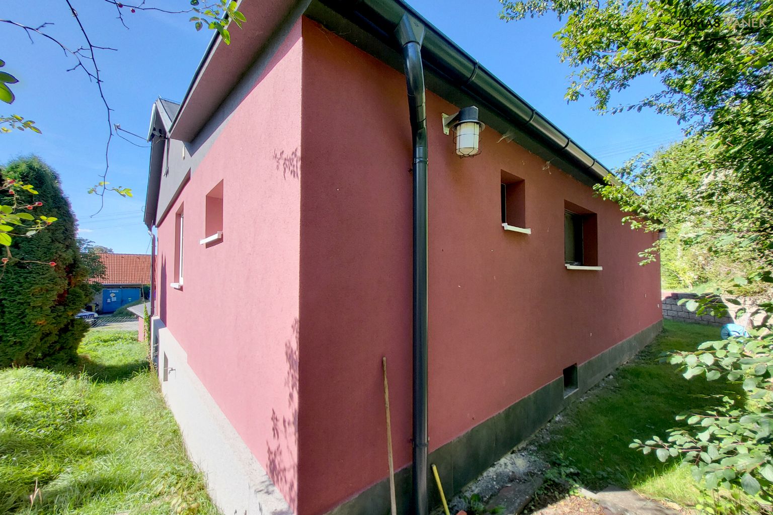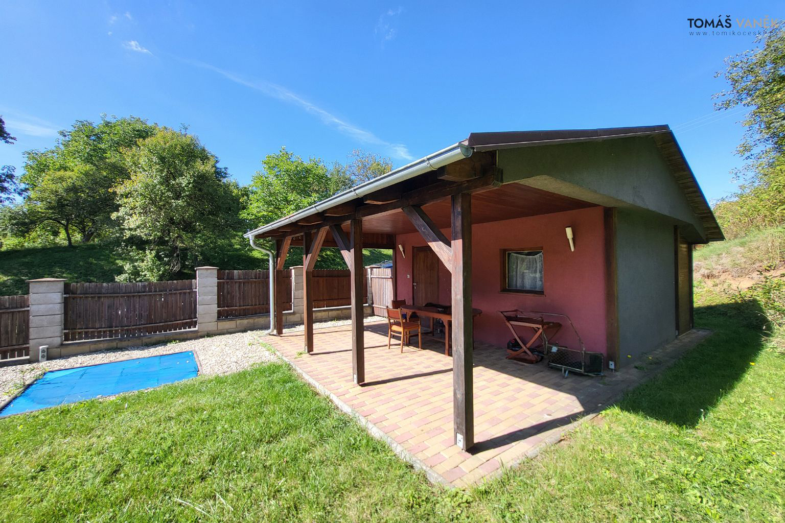 a před domem je dokonce prostor připravený na budoucí bazén.
