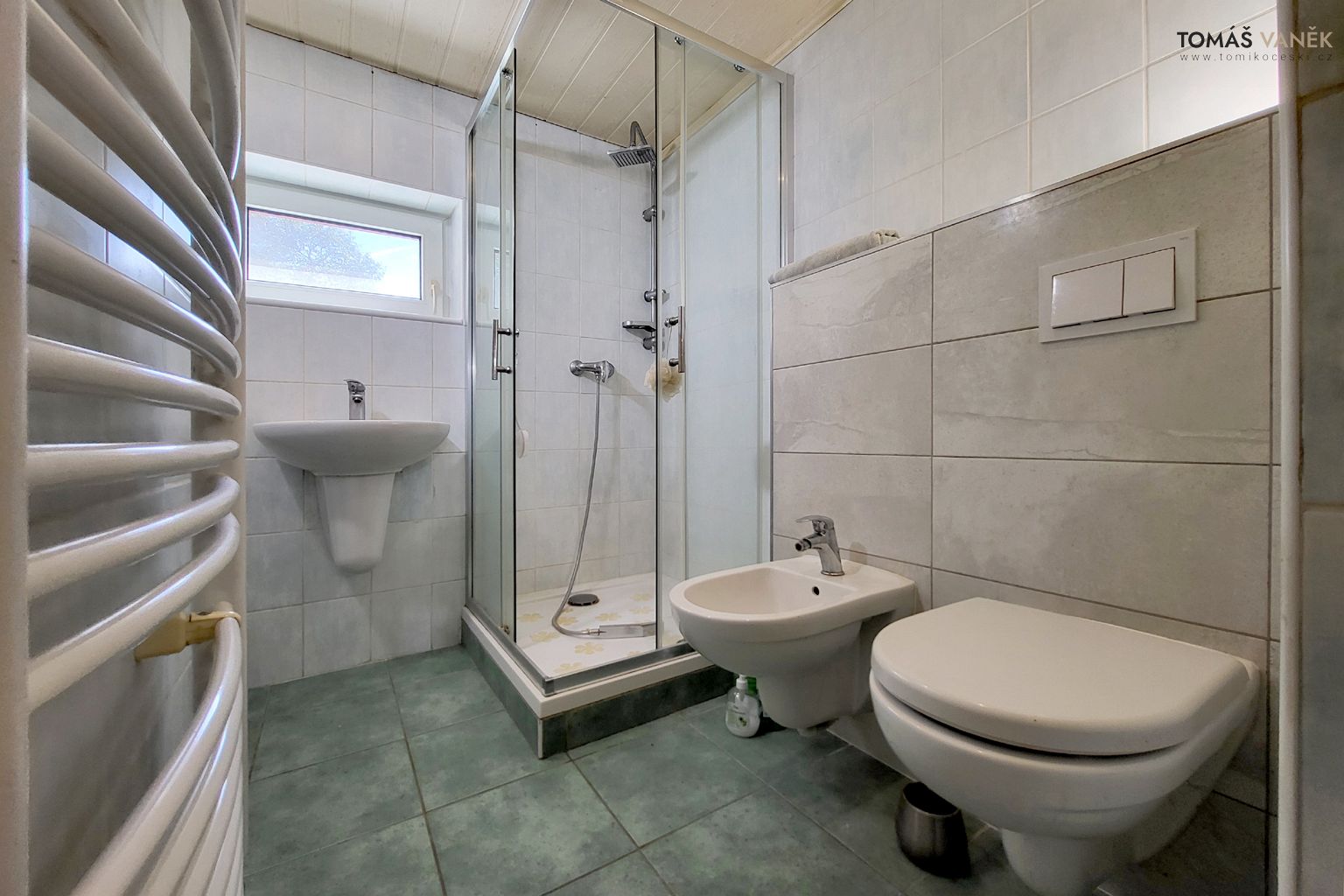 Samozřejmostí je koupelna se sprchovým koutem, bidetem, místem na pračku a sušičku, skříní na prádlo – a navíc druhé, samostatné WC.