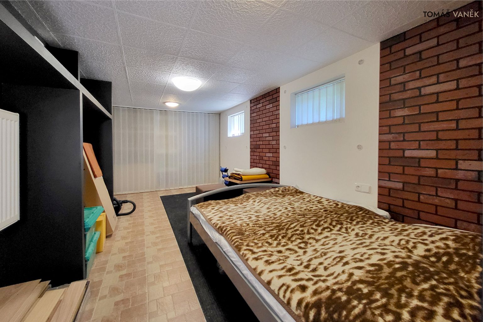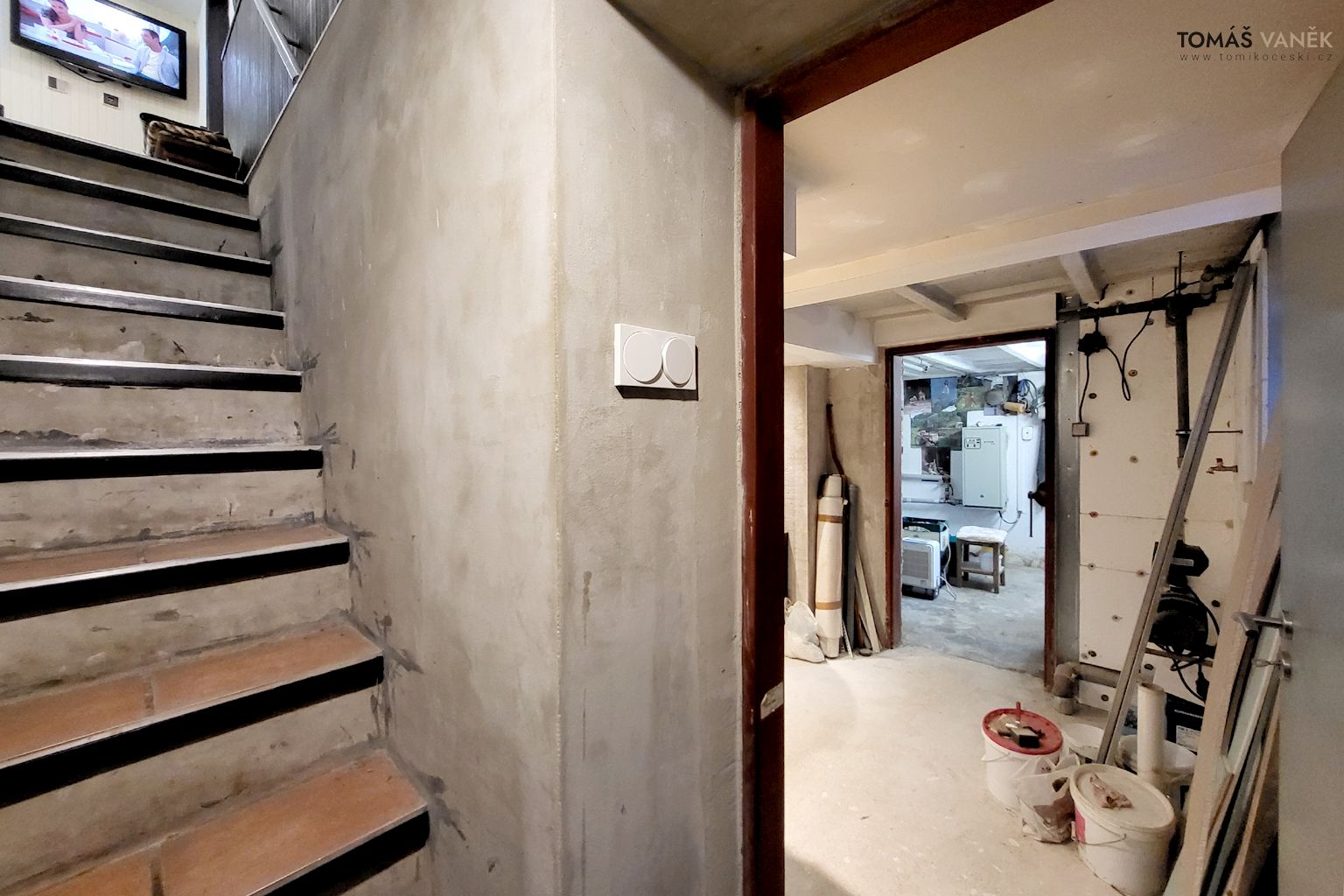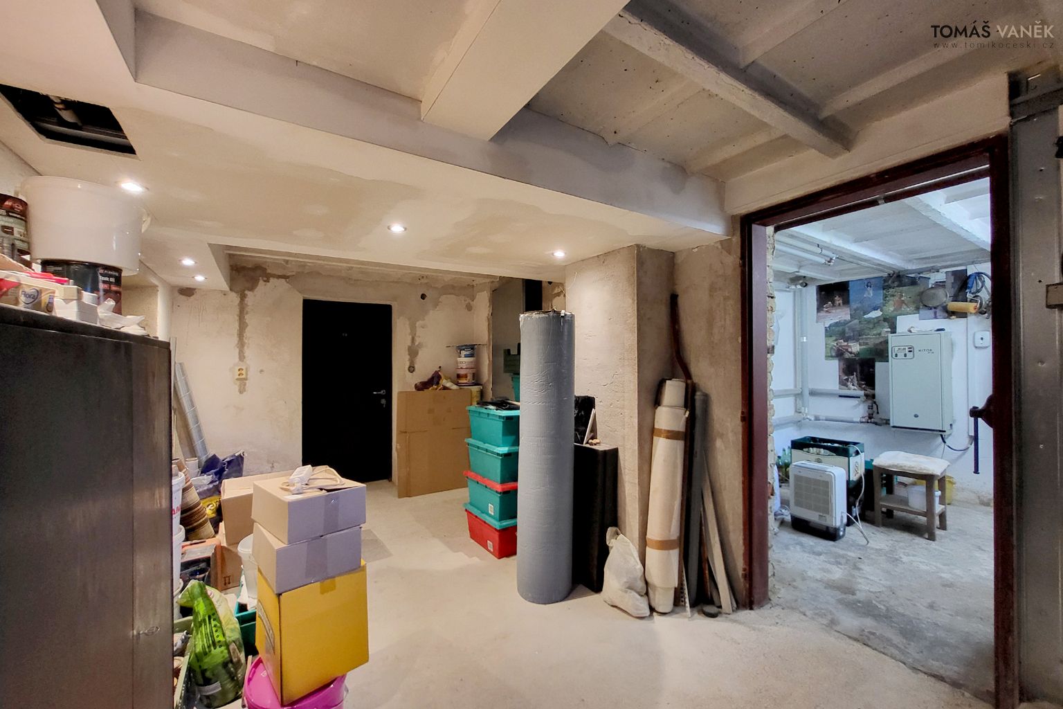Pod domem se nachází suchý, čistý a temperovaný sklep, který vůbec nepůsobí sklepně – spíš jako druhé, užitkové podlaží.