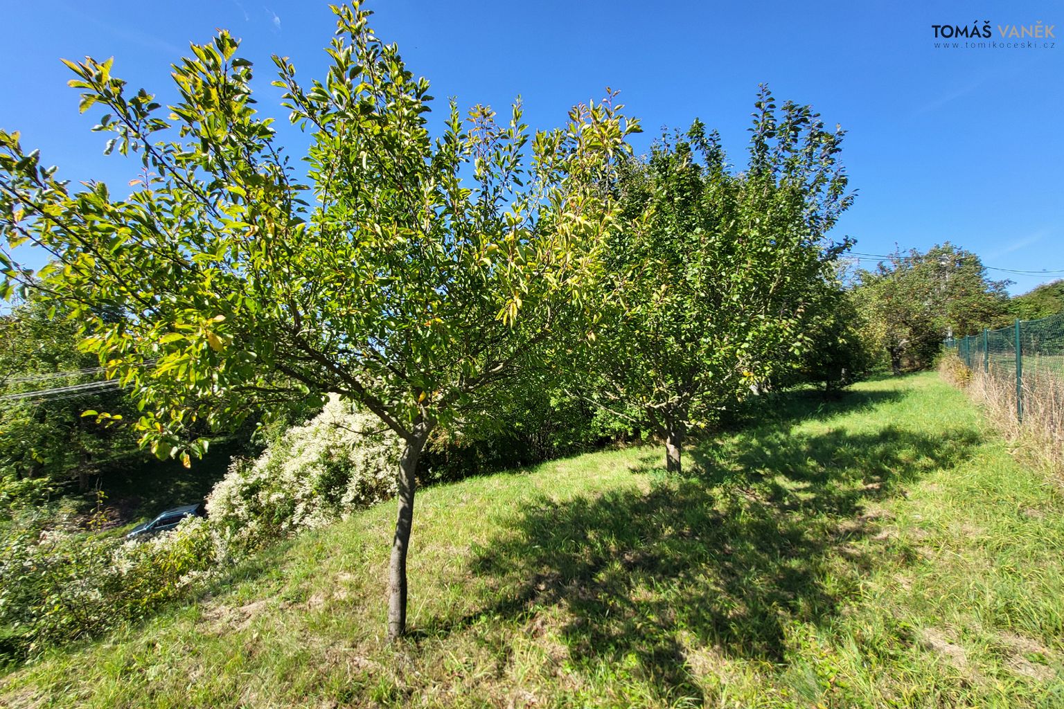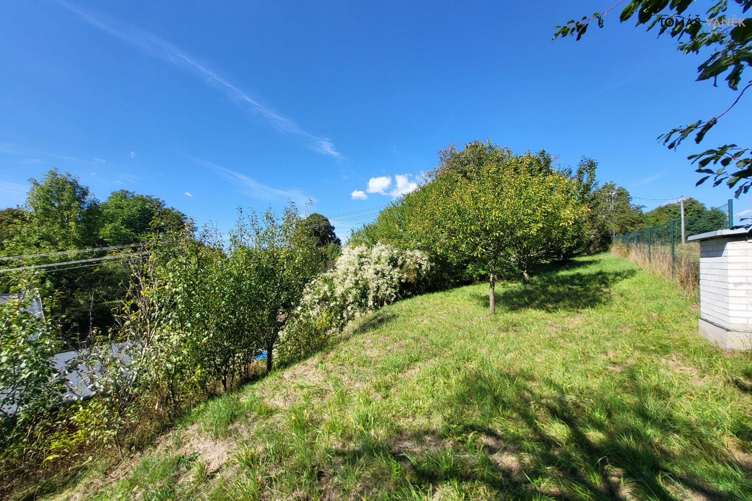 Pozemek má celkem 1 417 m², z toho zahrada samotná 1 110 m². Cca 2/3 jsou v rovině, zbytek tvoří svah. Celý prostor je oplocený, z ulice dřevěnou palisádou – maximální soukromí, bezpečí pro děti i čtyřnohé parťáky.