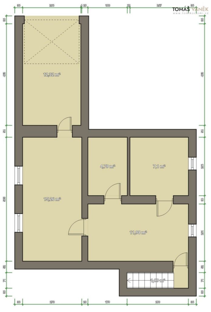 Dispozice je promyšlená a praktická – žádné zbytečné chodby, zato spousta užitečně využitelného prostoru: