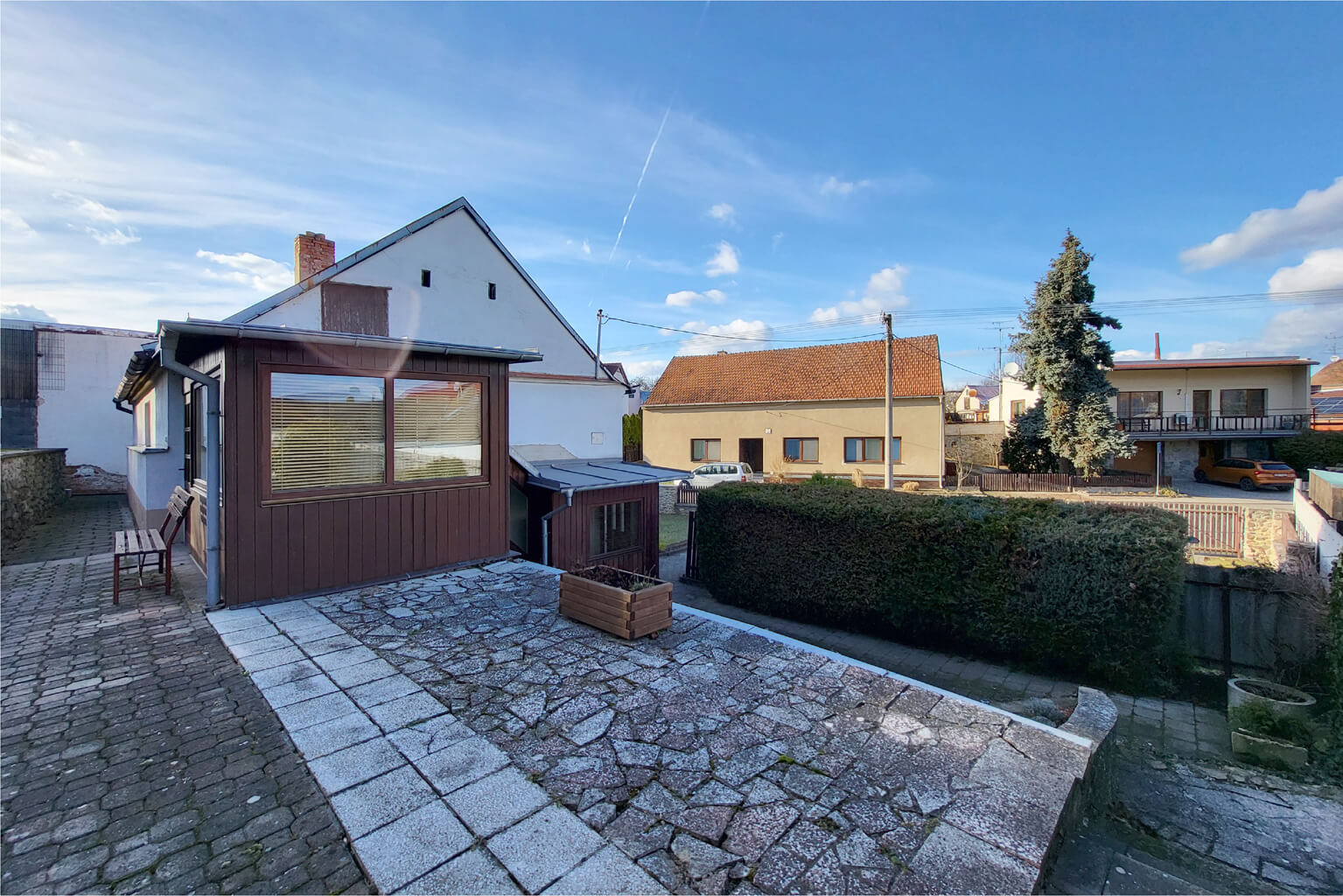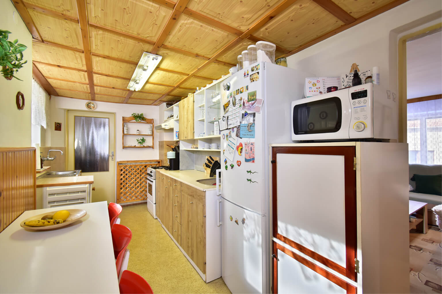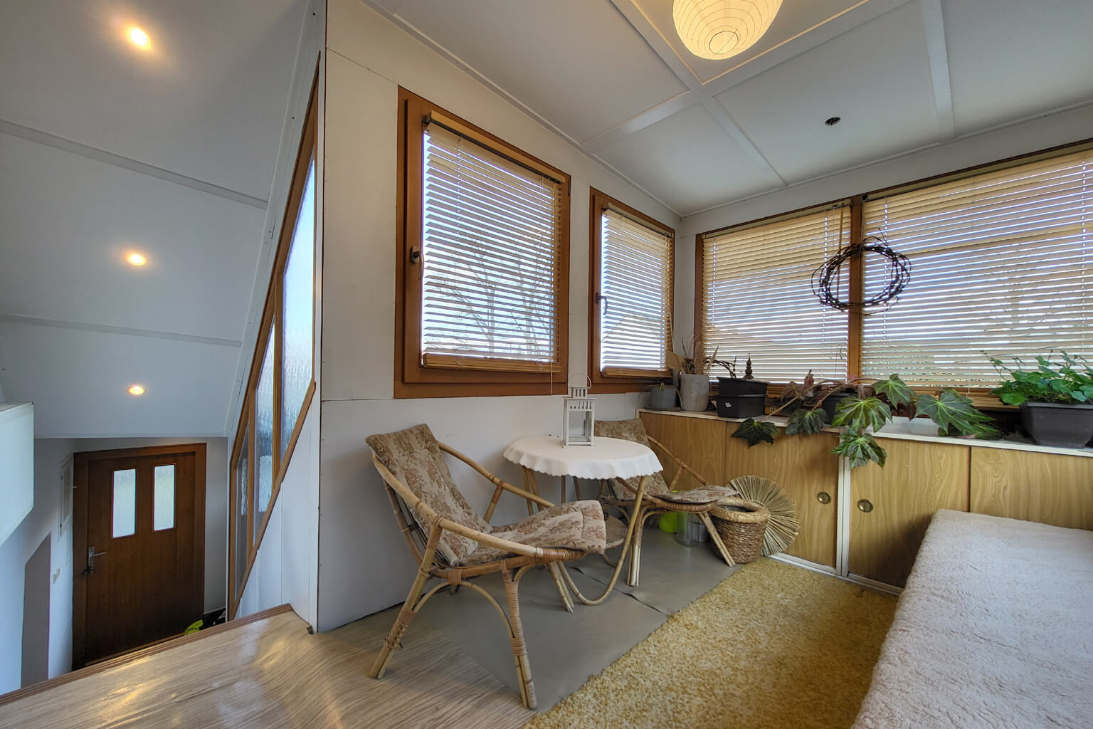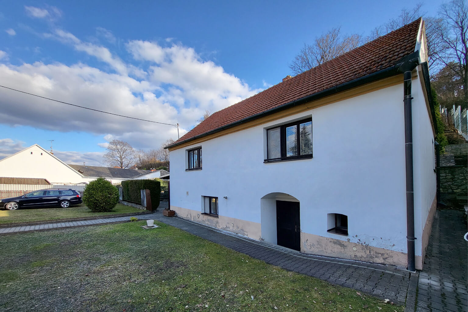 Vnitřek je ale zmodernizovaný do standardního rodinného bydlení. To, že hlavní obytné prostory jsou v prvním poschodí znamená, že máte absolutní soukromí a výborný rozhled.