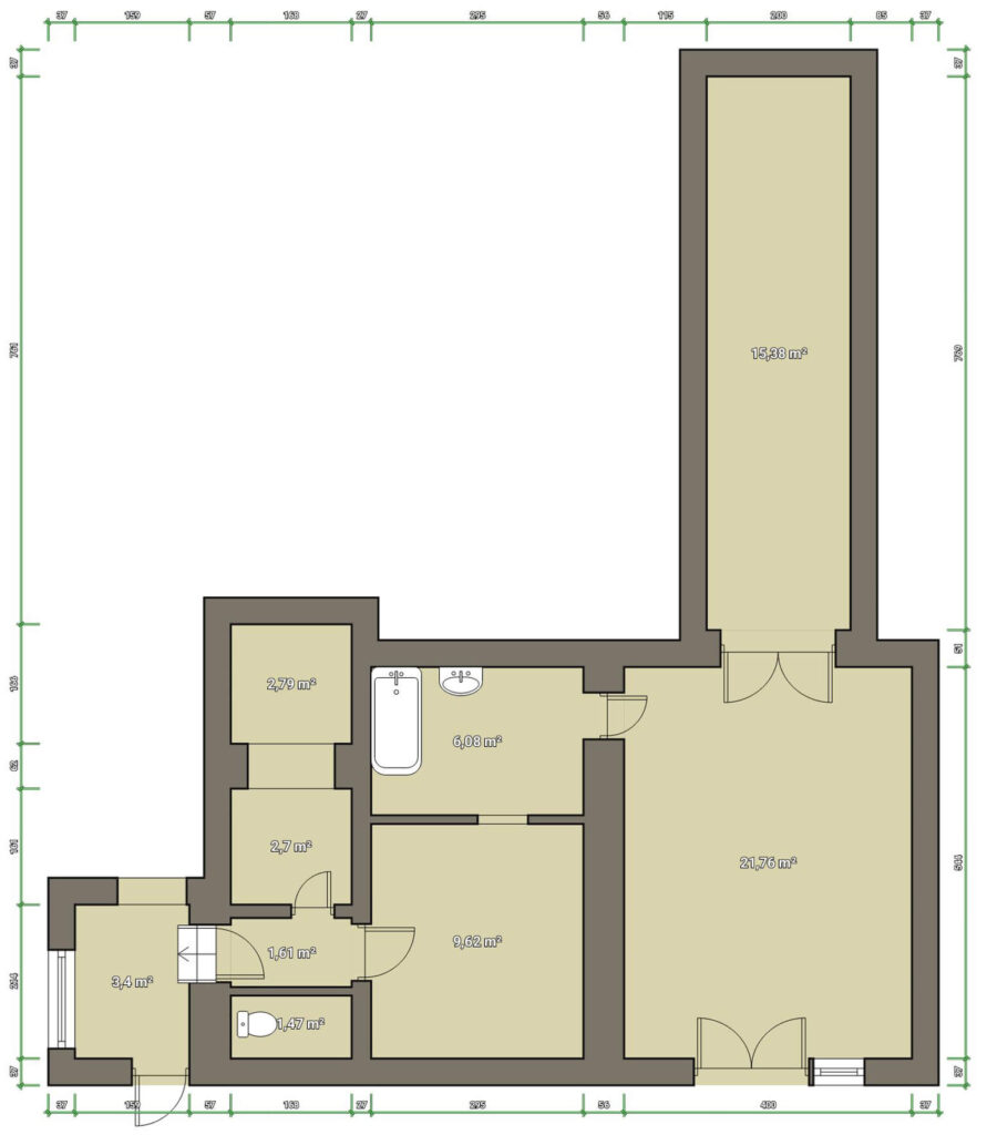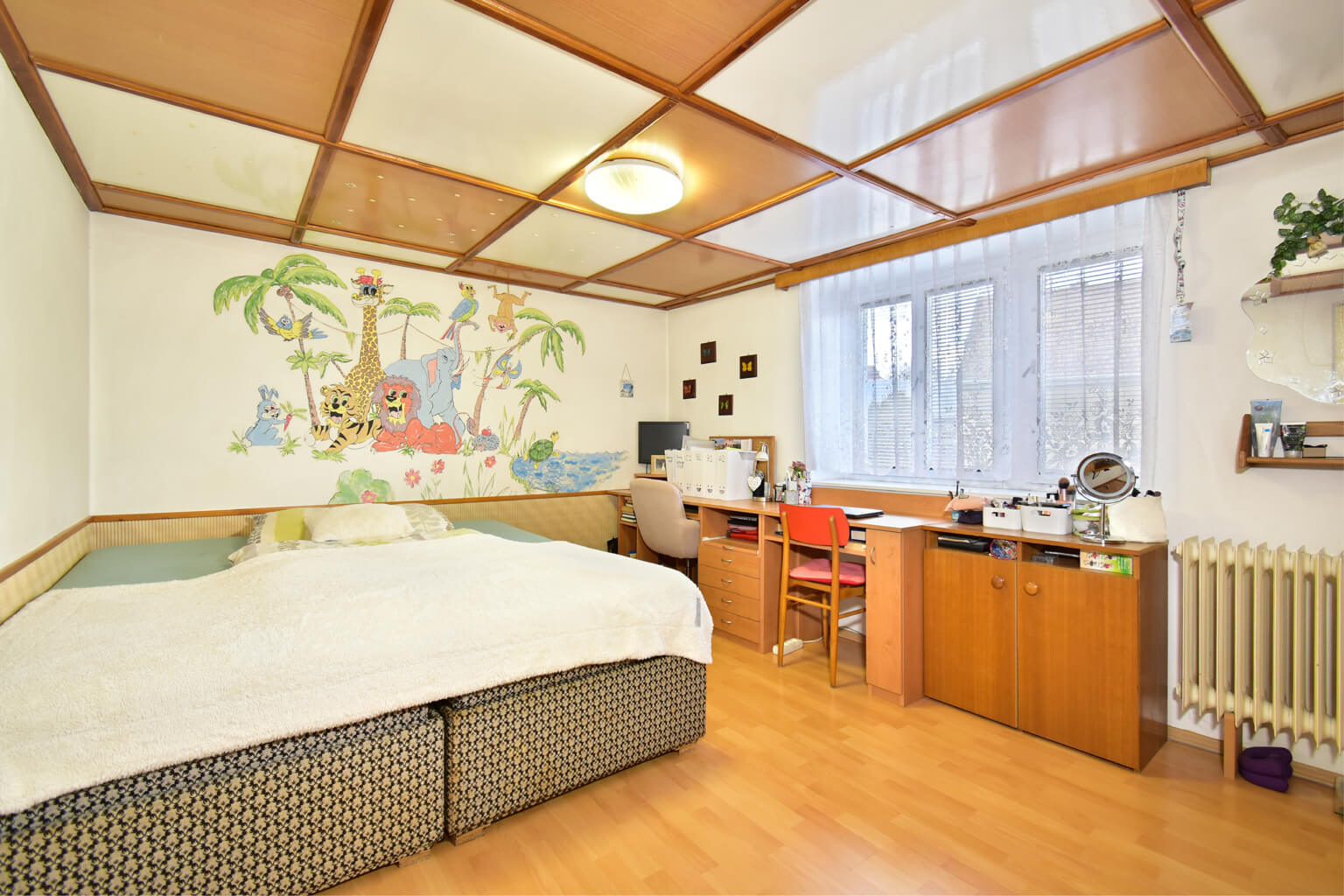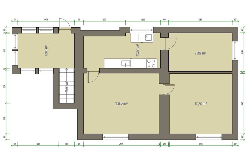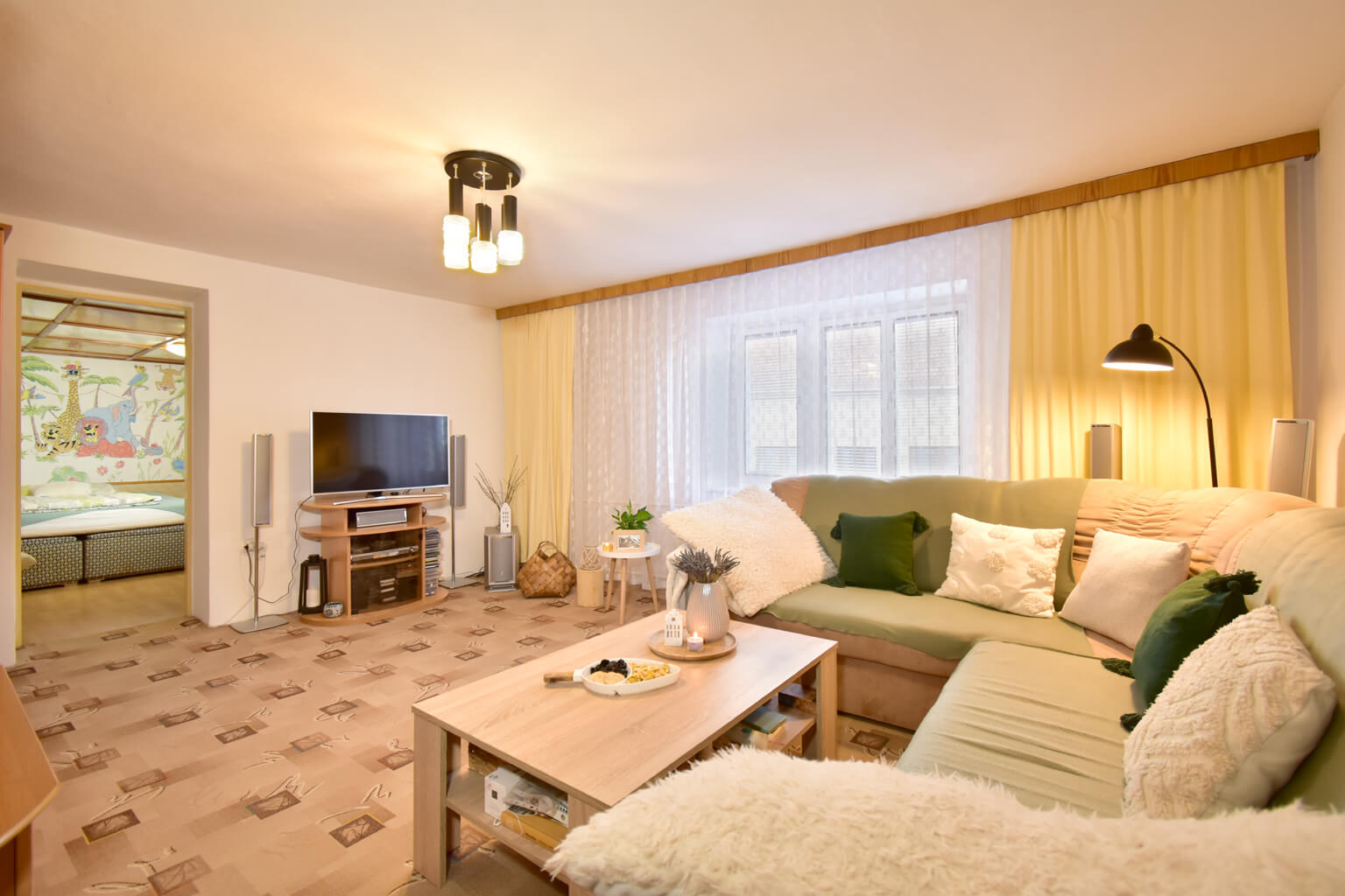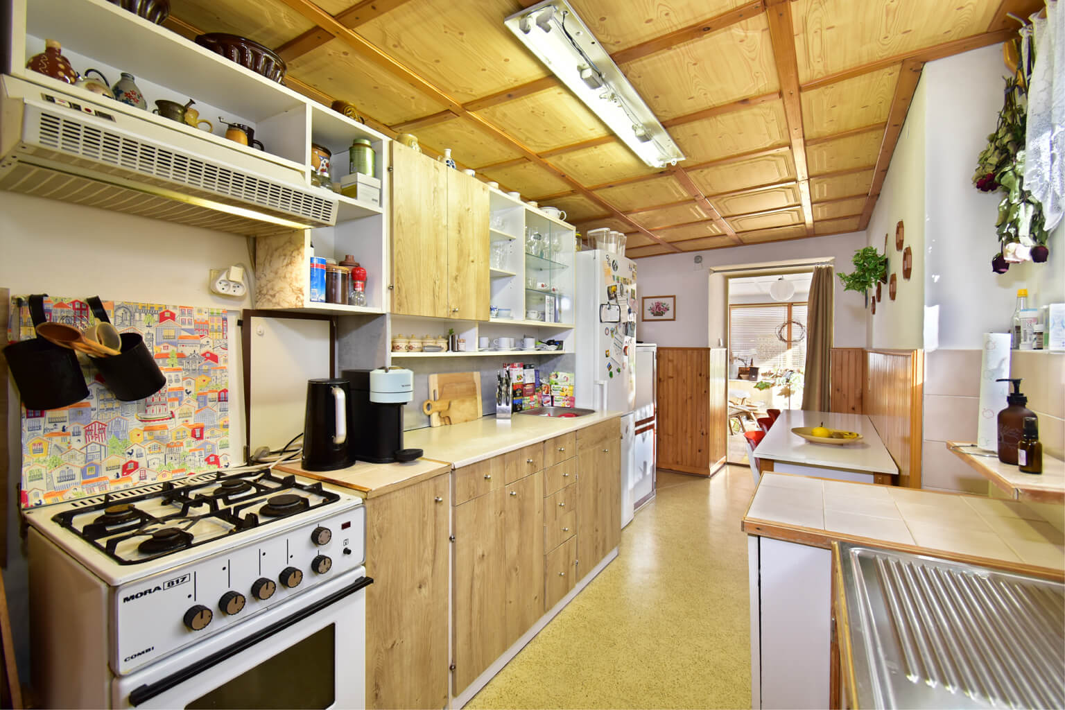 Vnitřek je ale zmodernizovaný do standardního rodinného bydlení. To, že hlavní obytné prostory jsou v prvním poschodí znamená, že máte absolutní soukromí a výborný rozhled.