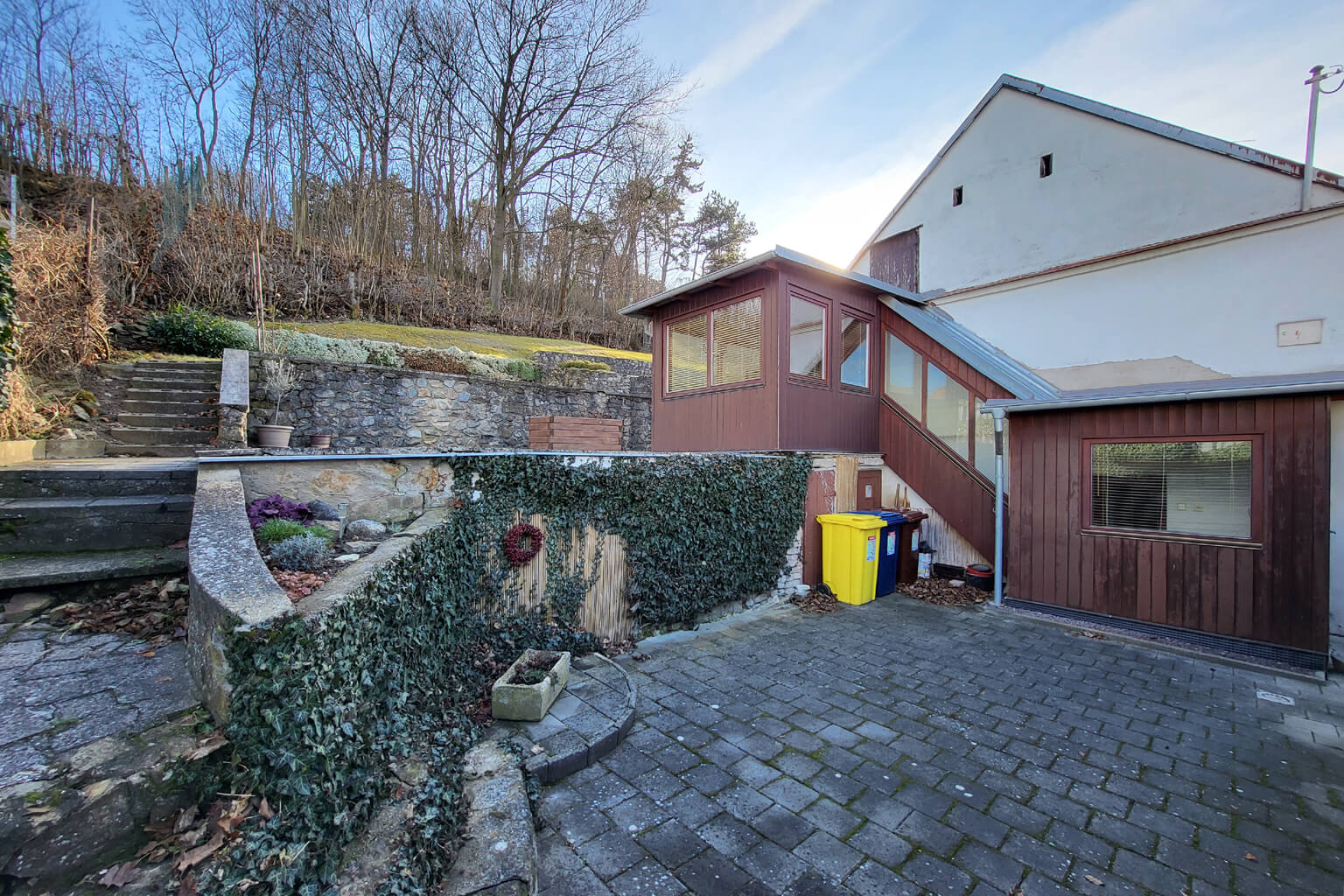 Starobylý rodinný dům s velkým vinným sklepem hluboko v hoře za domem.