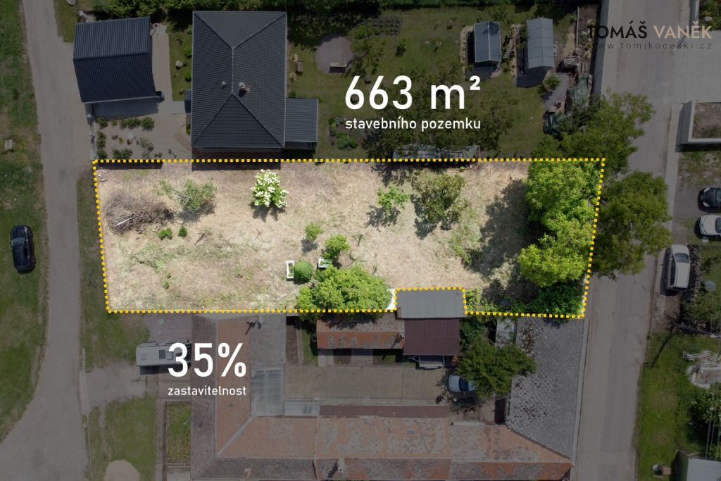 Výborná zastavitelnost 35% – postavíte dům až 230 m², ideální pro rodinný dům.