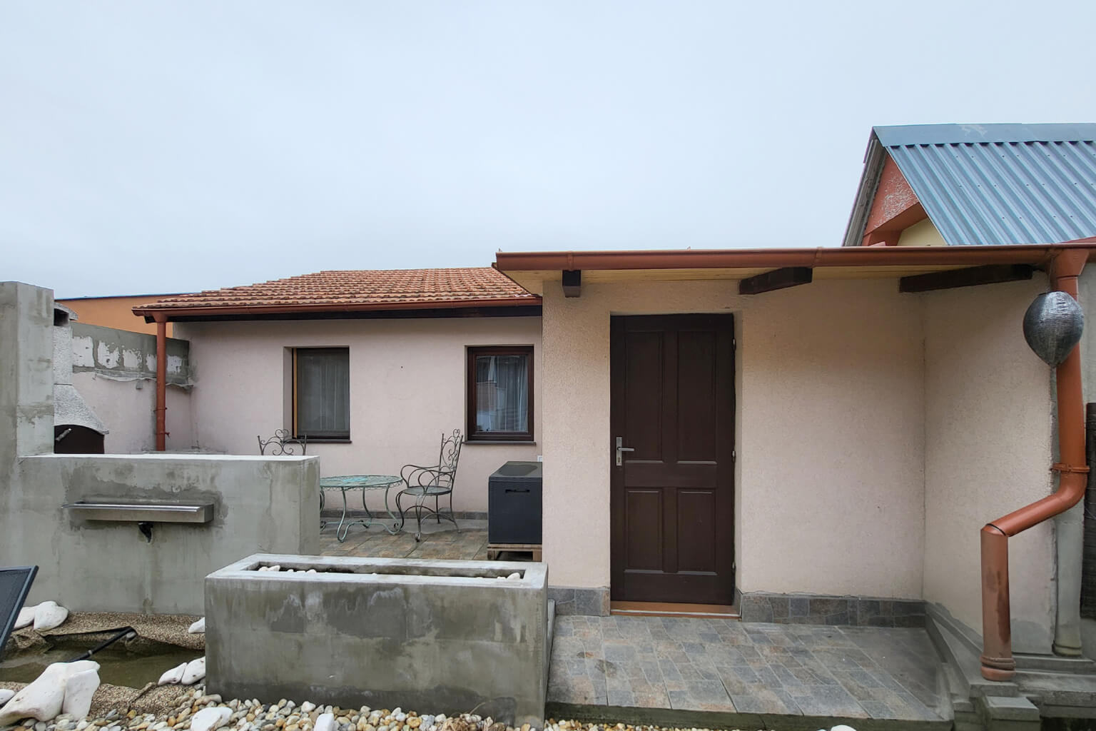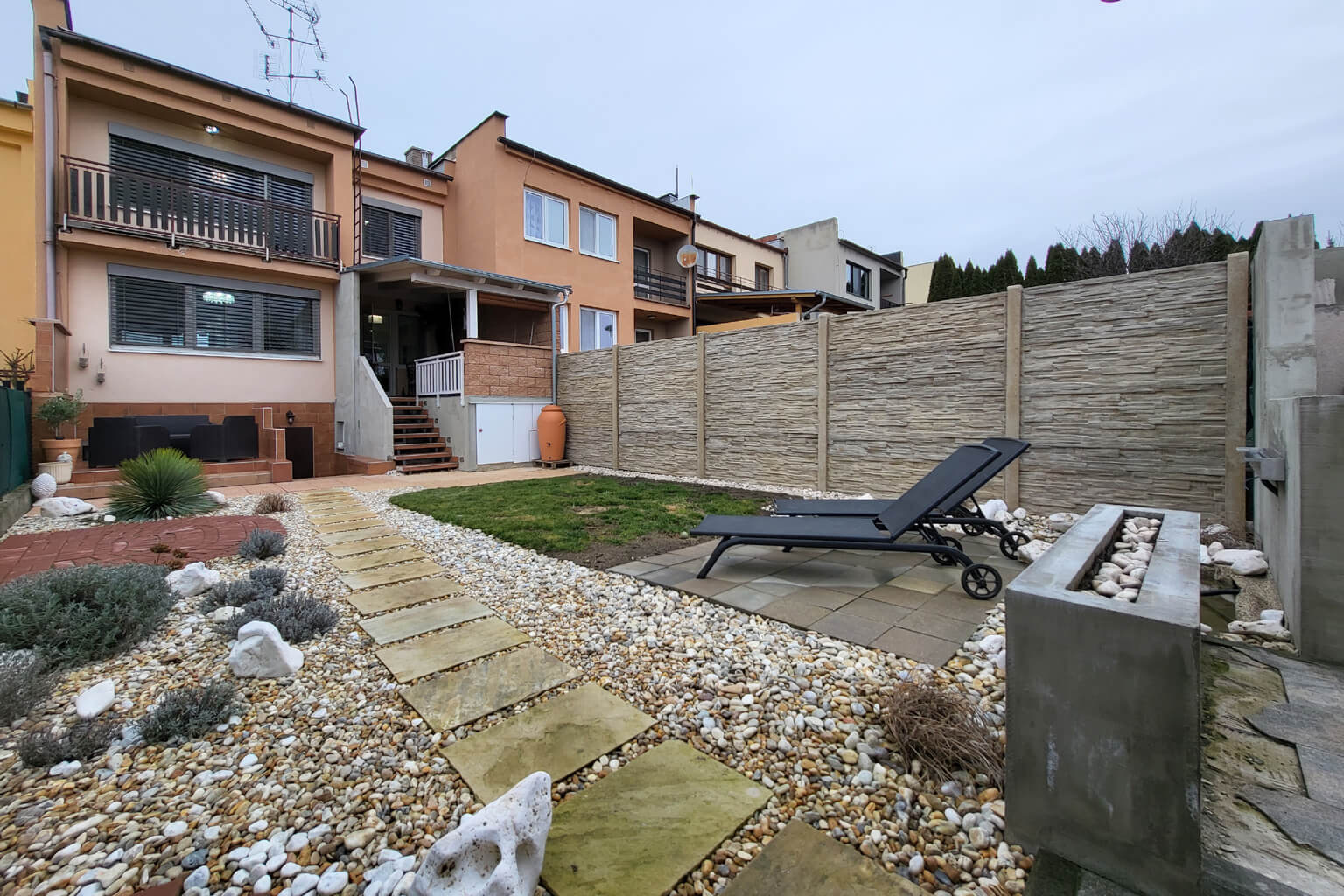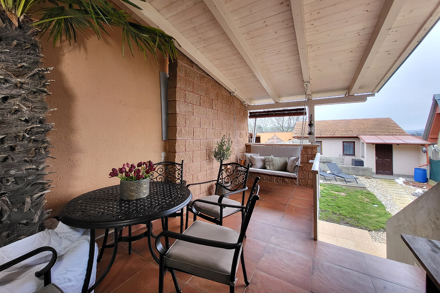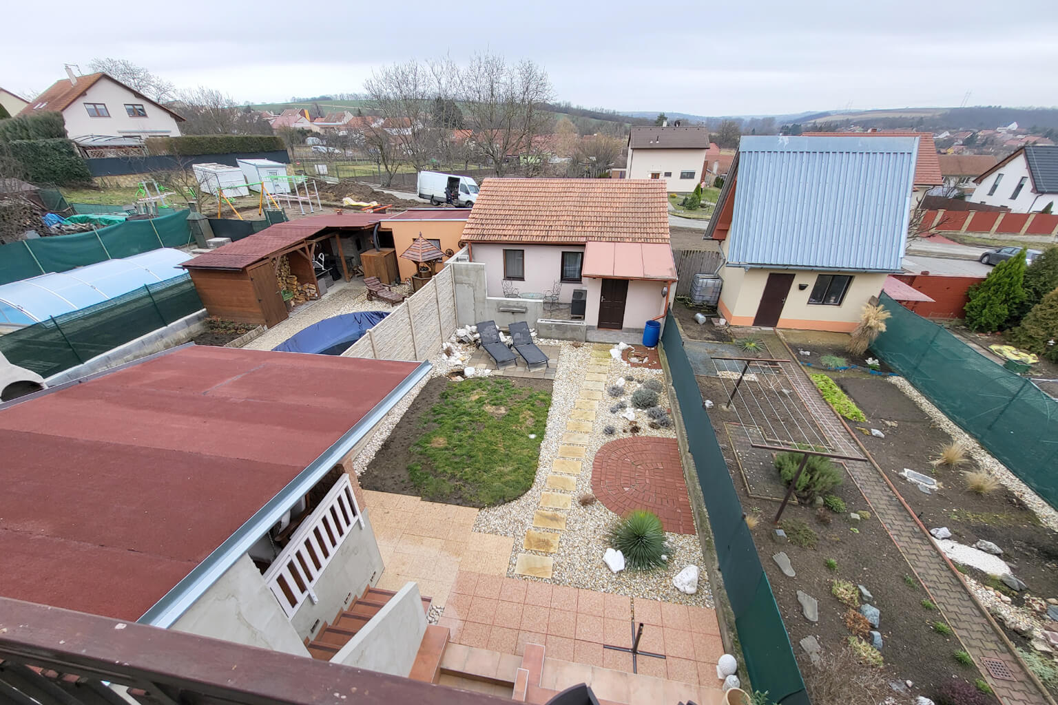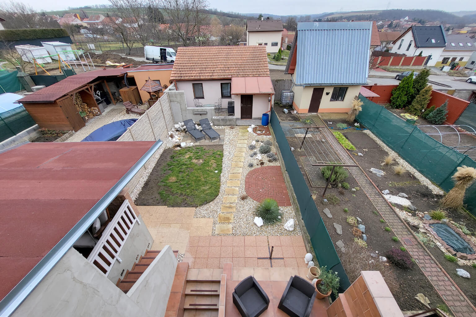 K tomu vám přidáme ještě samostatný domeček pro hosty na zahradě, parkování pro spoustu aut v garáži a na nájezdu a vychytanou okrasnou a odpočinkovou zahradu.