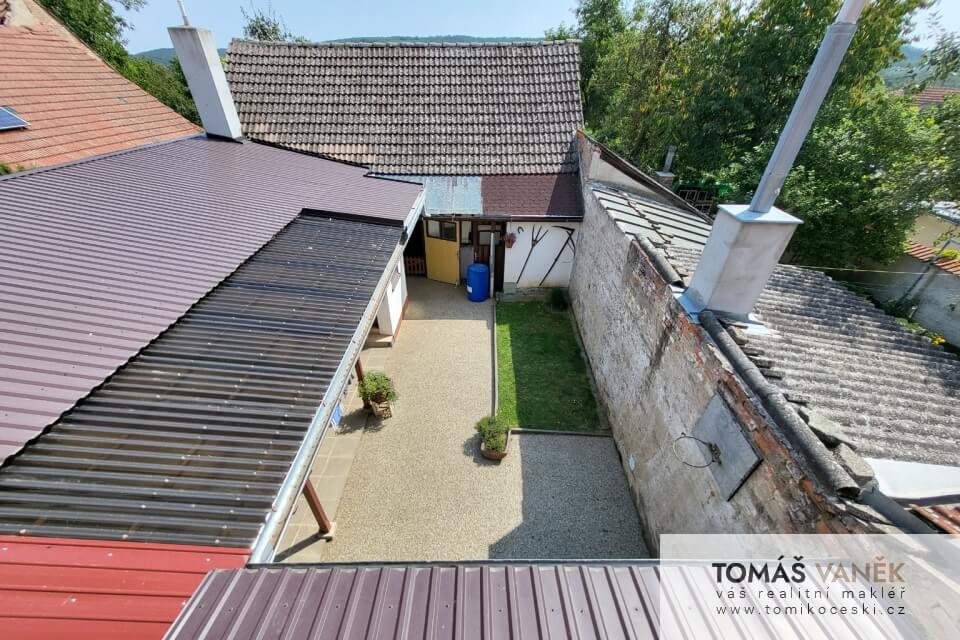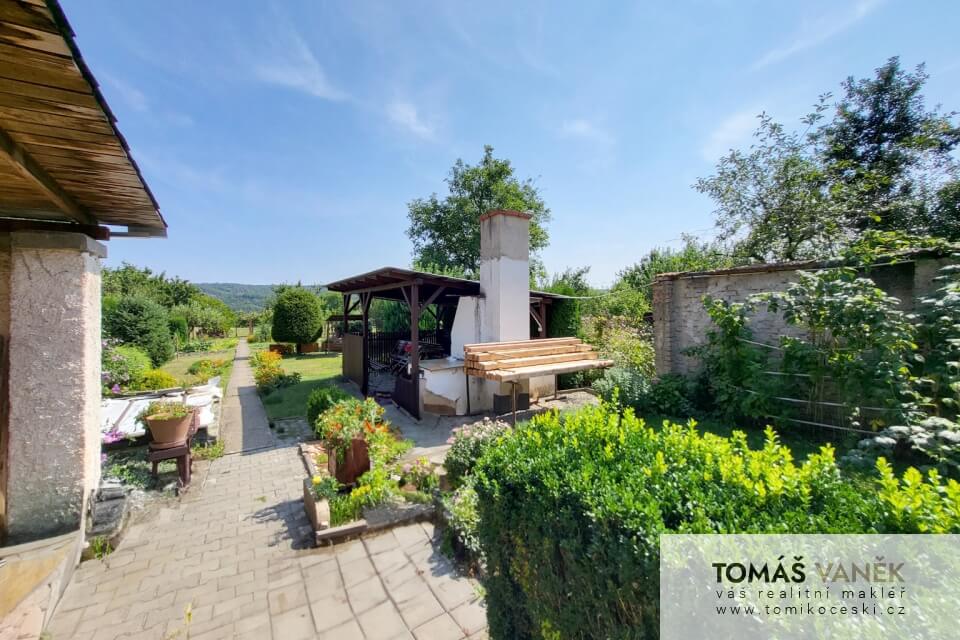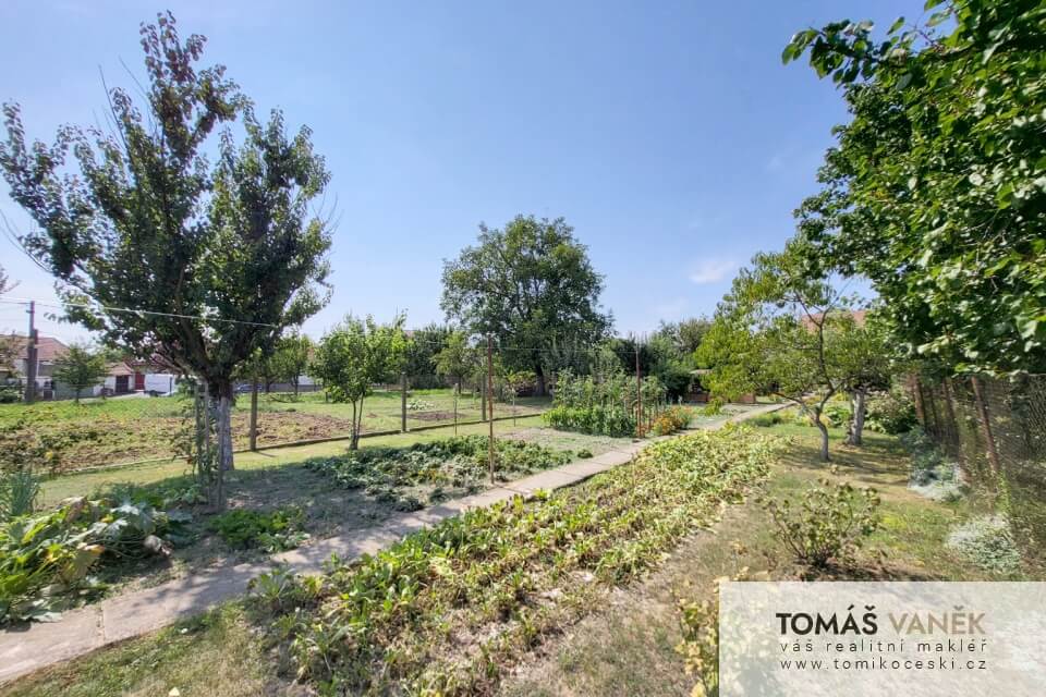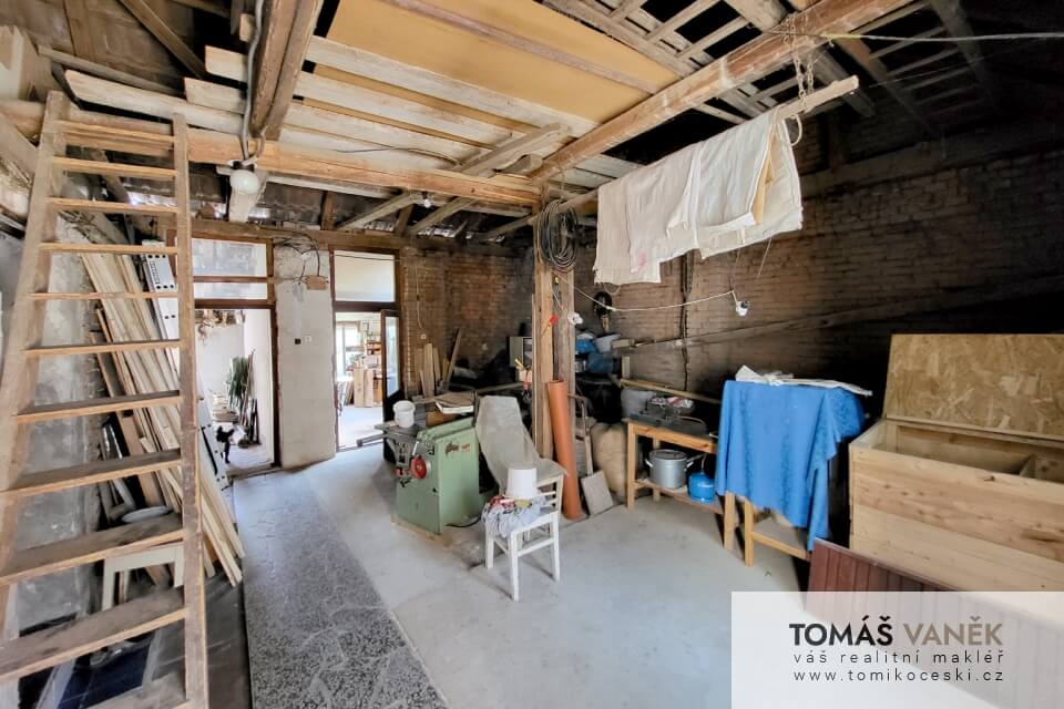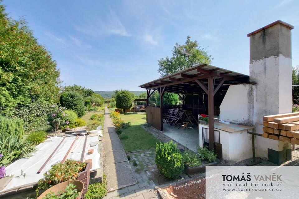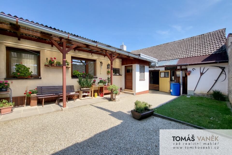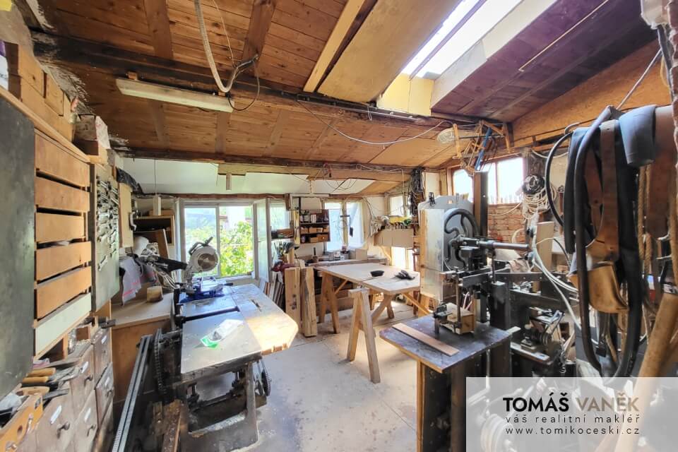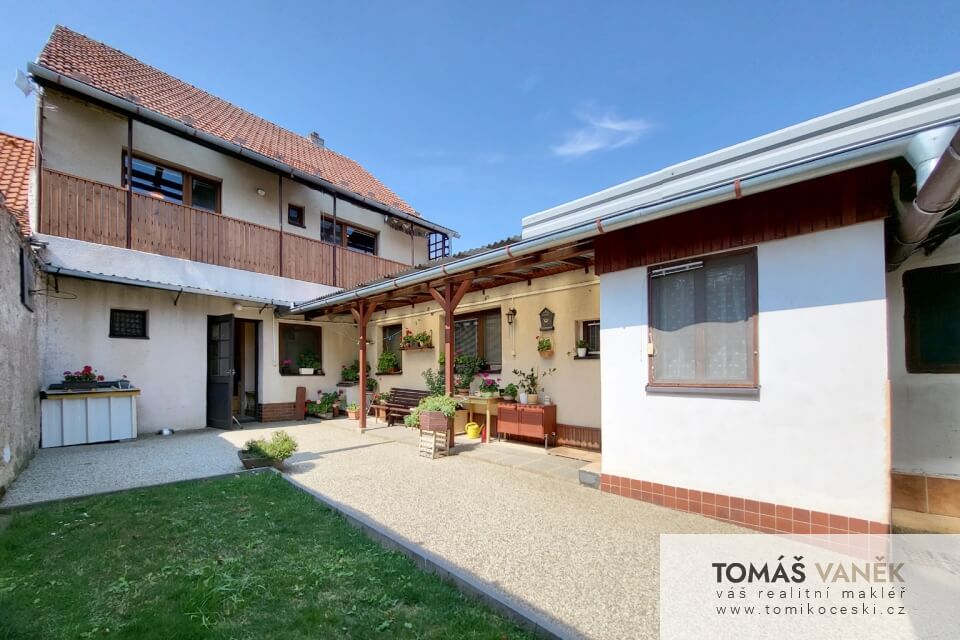 Především je v moderním stylu. Průjezd slouží jako velká garáž se vstupem do domu. Na dvoře najdete ještě „vejminek“ se čtyřmi místnostmi a vlastní koupelnou s WC. Než se dostanete na zahradu, najdete tu solidně vybavenou stolařskou dílnu. No a zahrada, přátelé… Kytky, zelenina, ovocné stromy, udírna, venkovní posezení… Nechybí tu zkrátka vůbec nic.