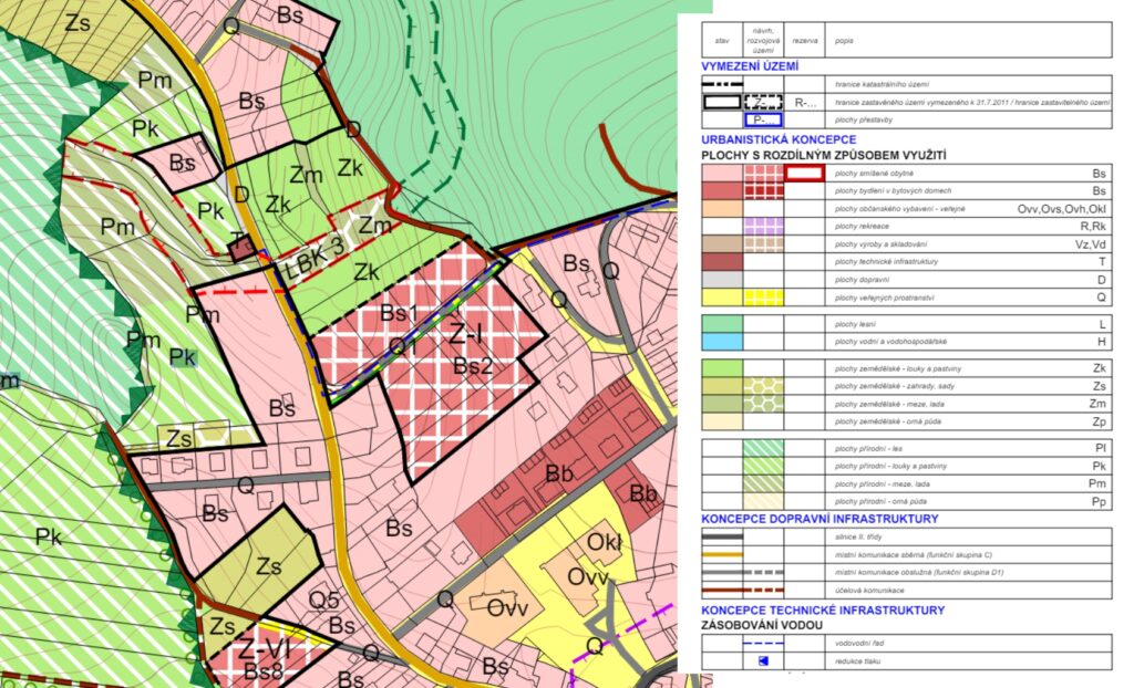 • Min. výměra stavebních pozemků pro rodinné domy v plochách Bs1 – Bs5 – 600 m2